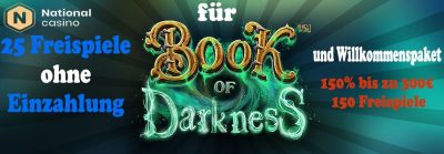 Der neue Online Casino Bonus ohne Einzahlung von National Casino umfasst 25 gratis Spins. Diesmal ist das ausgewählte Spiel aber Book of Nile: Lost Chapter. Die Bedingungen sind wie folgt: 40x Umsatzbedingung , ein Limit von sieben Tagen und ein maximaler Gewinn von 50€.